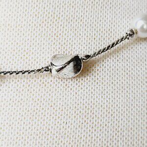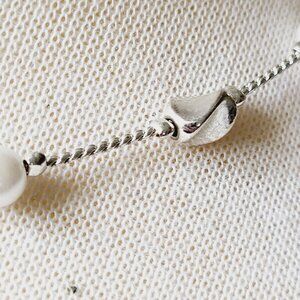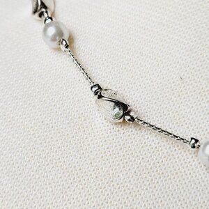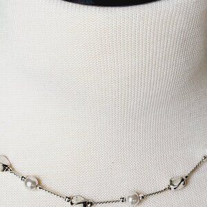 Silver Tone & Faux Pearl Choker Station Necklace Snake Chain 16"