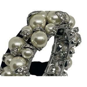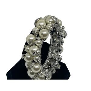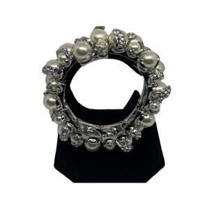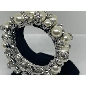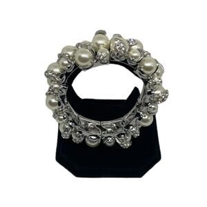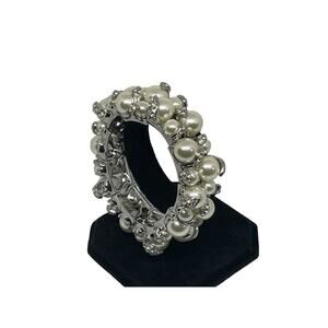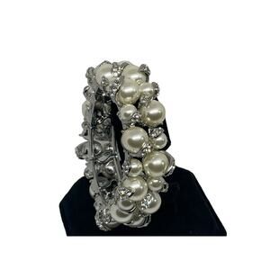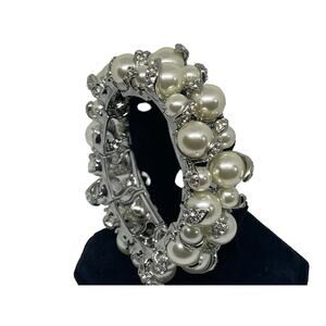 Silver Tone Faux Pearl Crystal Bracelet Stunning Women's Fashion Elegant Chic