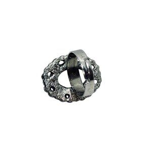 Silver Tone & Faux Pearl Oval Adjustable Statement Ring (R441)