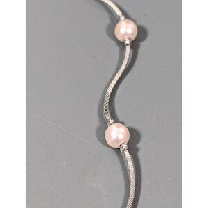 Silver Tone Faux Pearl Station Chain Necklace Elegant Bridal Classic 19"