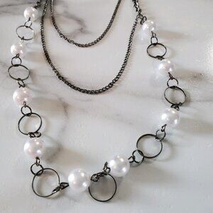 Silver Tone & Faux Pearls Necklace & Earring Set NEW