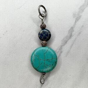 Silver Tone Faux Turquoise Beaded Linear Pendant