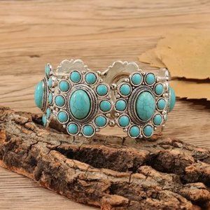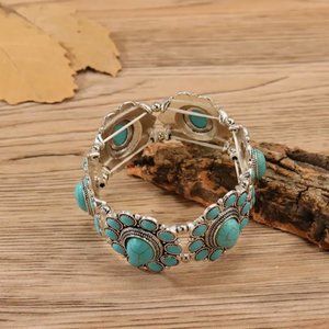 Silver Tone Faux Turquoise Western Stretch Bracelet