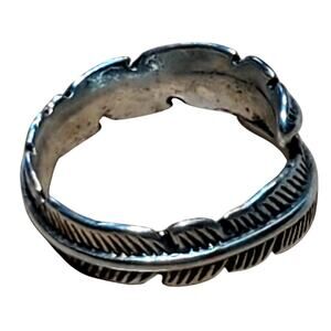 Silver Tone Feather Wrap Ring Sz 6 Unsigned