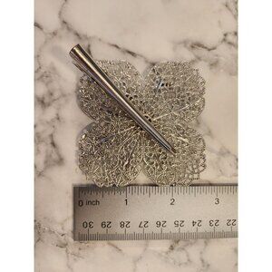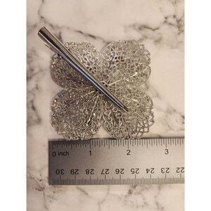 Silver Tone Filigree Flower Hair Clip Barrette With Rhinestones