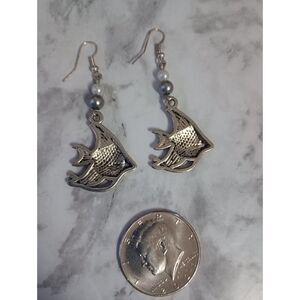 Silver Tone fish shaped earrings with hook backs. Pre owned * Coin is used for size comparison and is not included.