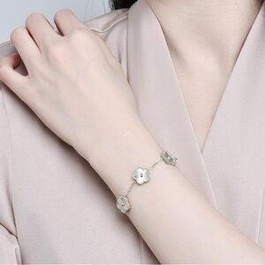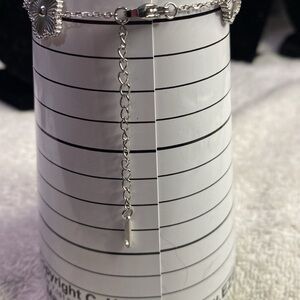 Elegant silver bracelet featuring delicate floral designs. Perfect for adding a touch of sophistication to any outfit.