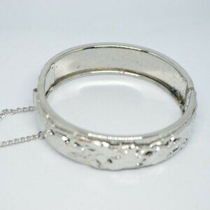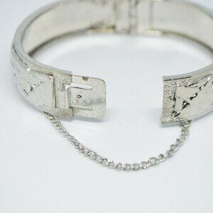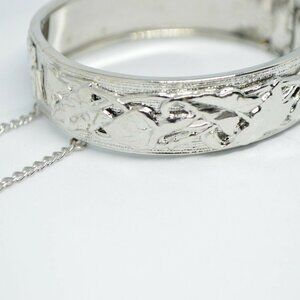Silver Tone Floral Calla Lily Embossed Bangle Clasp Bracelet Safety Chain