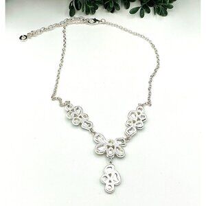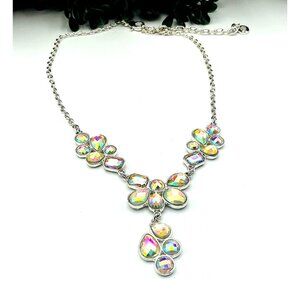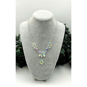 This elegant necklace features iridescent resin arranged in a floral pattern, adding a touch of sophistication to any ensemble. Its silver tone chain enhances its radiant design, making it suitable for professional settings.