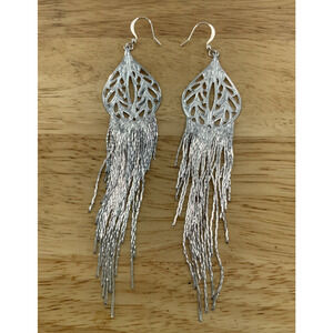 Silver Tone Fringe Tassel Dangle Boho French Hook Fashion Statement Earrings NEW