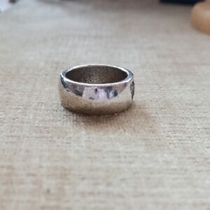 Stylish Silver Tone Guess Ring Featuring a Unique Triangle Glass Detail.
