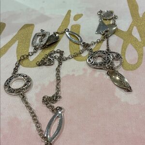 Silver Tone Geometric Carved Etched Variety Design Link Points Link Necklace