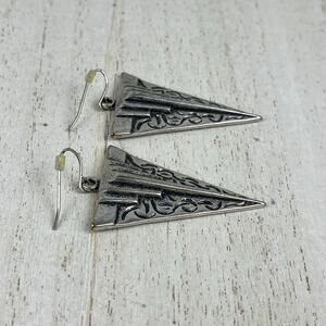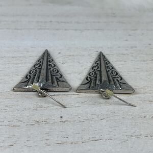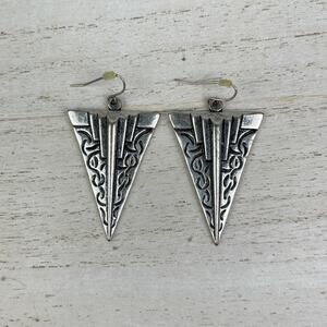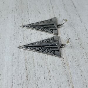 Silver Tone Geometric Earrings Black Engraved Tribal Triangle Arrowhead Art Deco