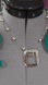 Double wire strand silver tone necklace featuring a modern geometric square pendant. 8" drop, 1 1/2" pendant with 3" extension. Perfect for casual or dressing up. No brand