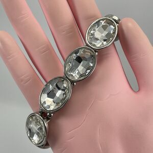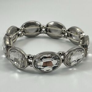 Silver Tone Glass Rhinestone Boho Statement Stretch Bracelet Chunky Fun Funky