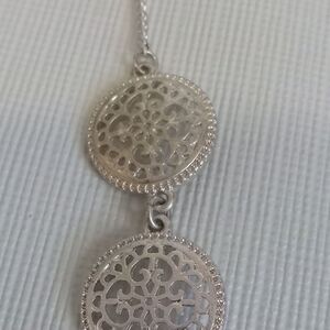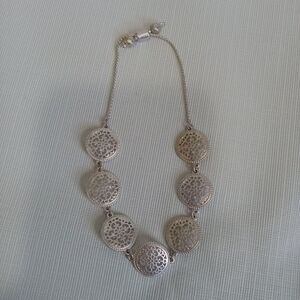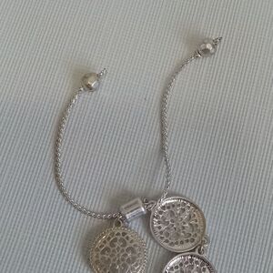 Silver Tone & Gold Filigree Circle Cutout Charms Adjustable Lightweight Bracelet