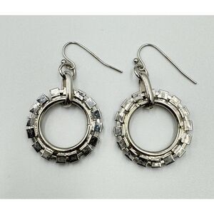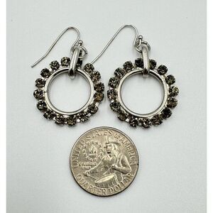 Silver Tone Gray Green Prong Set Pavé Crystal Glass Circle Dangle Earrings