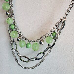 Silver Tone & Green Beads Multi Strand Necklace 💥3 for $24💥