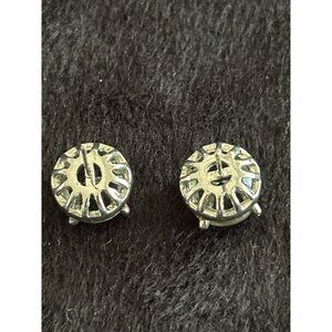 Silver Tone Green Crystal & Rhinestone Stud Earrings