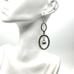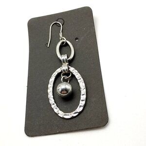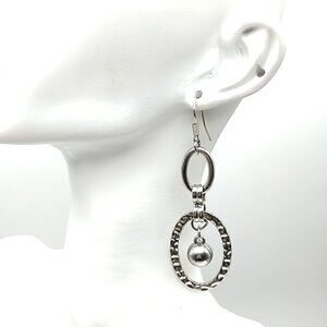 Silver Tone Hammered Long Oval Link Dangle-Drop Earrings with Ball Drop Y2K