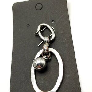 ♦ Accent: A high-shine, smooth, spherical metal bead/ball dangles from the center of the bottom oval, adding movement and a polished element.