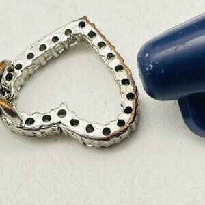 Open heart pendant with clear rhinestone accents, hung sideways