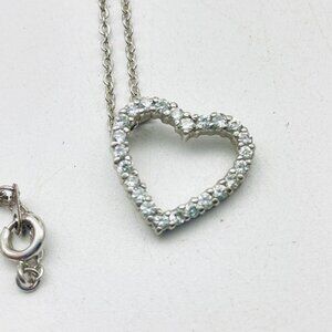 Silver Tone Heart Pendant Necklace Clear Rhinestones Open Heart Romantic