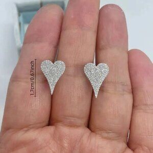 These heart-shaped stud earrings feature a modern design and sparkling pave crystals, crafted to complement formal and semi-formal attire.