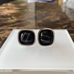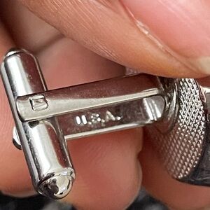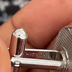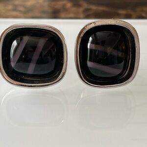 Silver Tone Hickok Black Swirl Stone Inlay Cuff Links