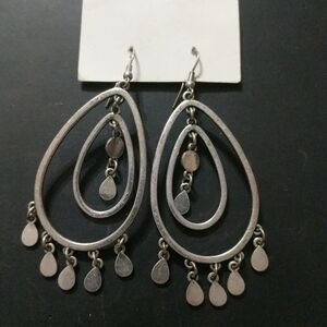 Silver Tone Hoop Chandelier Dangle Statement Earrings. 3" long.