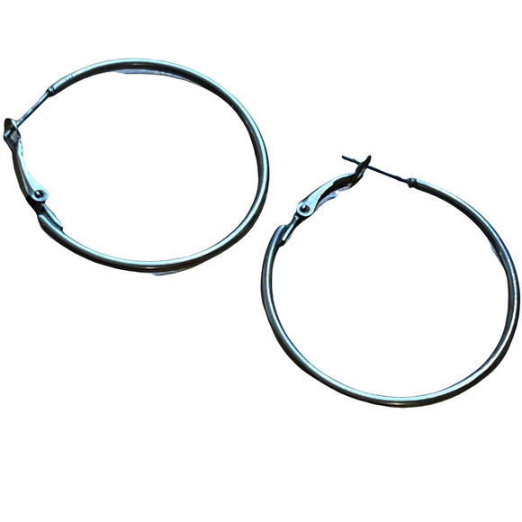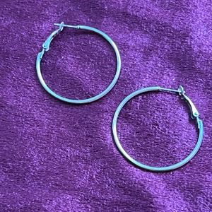 Silver Tone Hoop Earrings with Self Closure Clasp