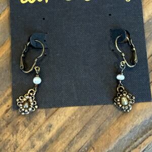 New old stock lot of 2 Cookie Lee Pierced Earrings. Silver tone hoop and freshwater pearl dangle earrings