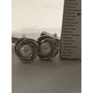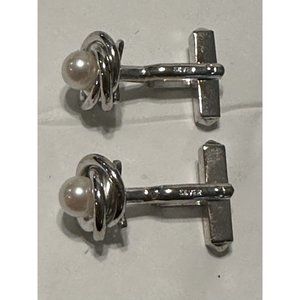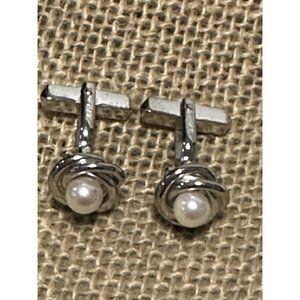 Silver Tone Knot Pearl Cuff Links Formal Tuxedo