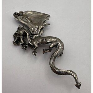 This intricately designed vintage pewter dragon pendant features a striking red gemstone eye. Its bold craftsmanship adds character and timeless charm to any collection.