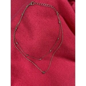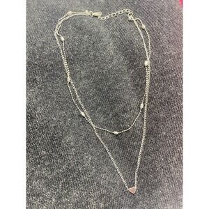 Silver Tone Layered Necklace Choker Heart Pendant 15"