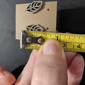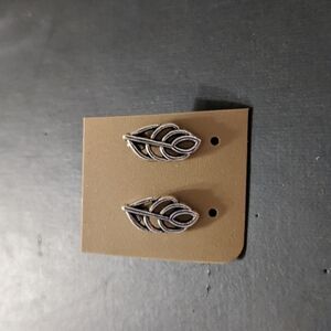 Silver Tone Leaf Feather Pierced Statement Earrings. .5" long.