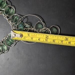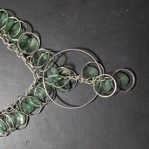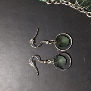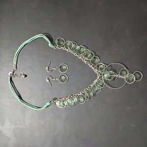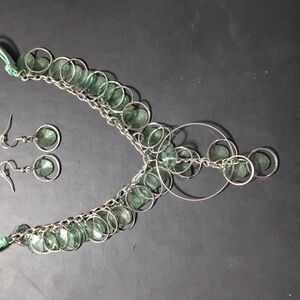 Silver Tone Light Green Crystal Disc Statement Necklace and Earrings Set. Earring are 1.5". Necklace is 17"-18.5" long.