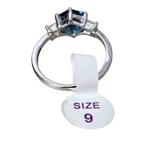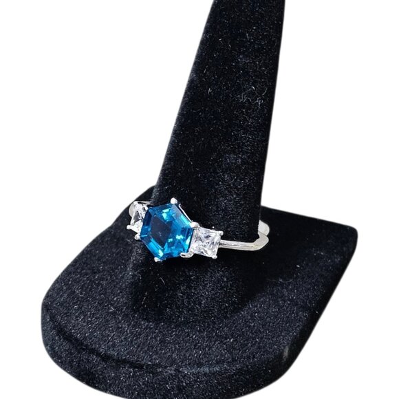 Silver Tone London Blue Topaz Hexagon Diamante CZ Ring New Size 9 NWT