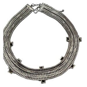 Silver Tone Mesh Collar Necklace Rhinestone Studded Woven 18" Chain