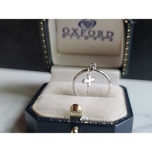 Silver Tone Metal Cross Charm Ring, SIZE US 5.75