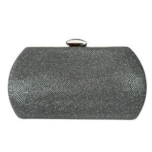 Silver Tone Metal Hardware Frame Glitter Fabric Clutch Evening Bag B72Q