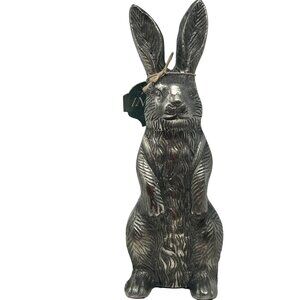 Silver Tone Metal Rabbit Bunny Figure Sitting Décor Garden Statue 12" Tall NWT