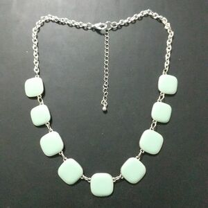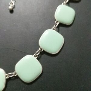 Silver Tone Mint Green Enamel Square Statement Necklace.
