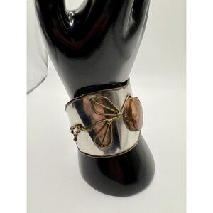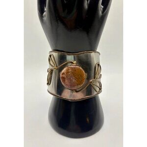 Silver Tone Modernist Large Chunky Cuff Bracelet Jasper Stone Handmade?