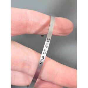 Silver Tone Mom of Boys Cuff Stacking Bangle Bracelet 6"