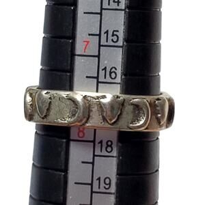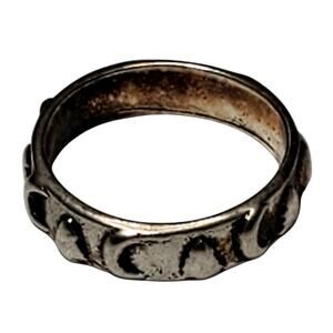 Silver Tone Moon Heart Design Size 7.5 Unsigned