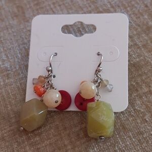 Multi Colored Faux Stone and Bead Dangle Earrings