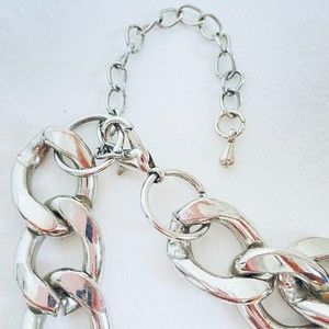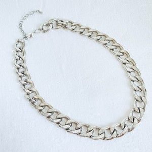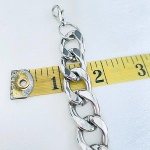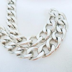 Silver Tone Chunky Curb Chain Princess Length Necklace Lobster Claw Clasp
