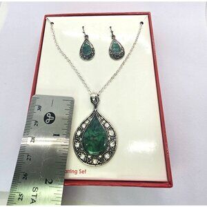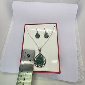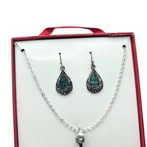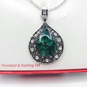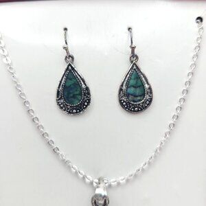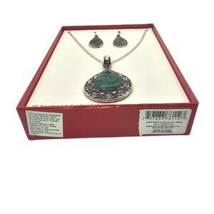 Silver Tone Necklace & Earring Set Faux Mother Of Pearl Enamel