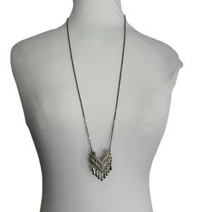 Silver Tone Necklace Textured Dangled Pendant Statement 29-31" Long